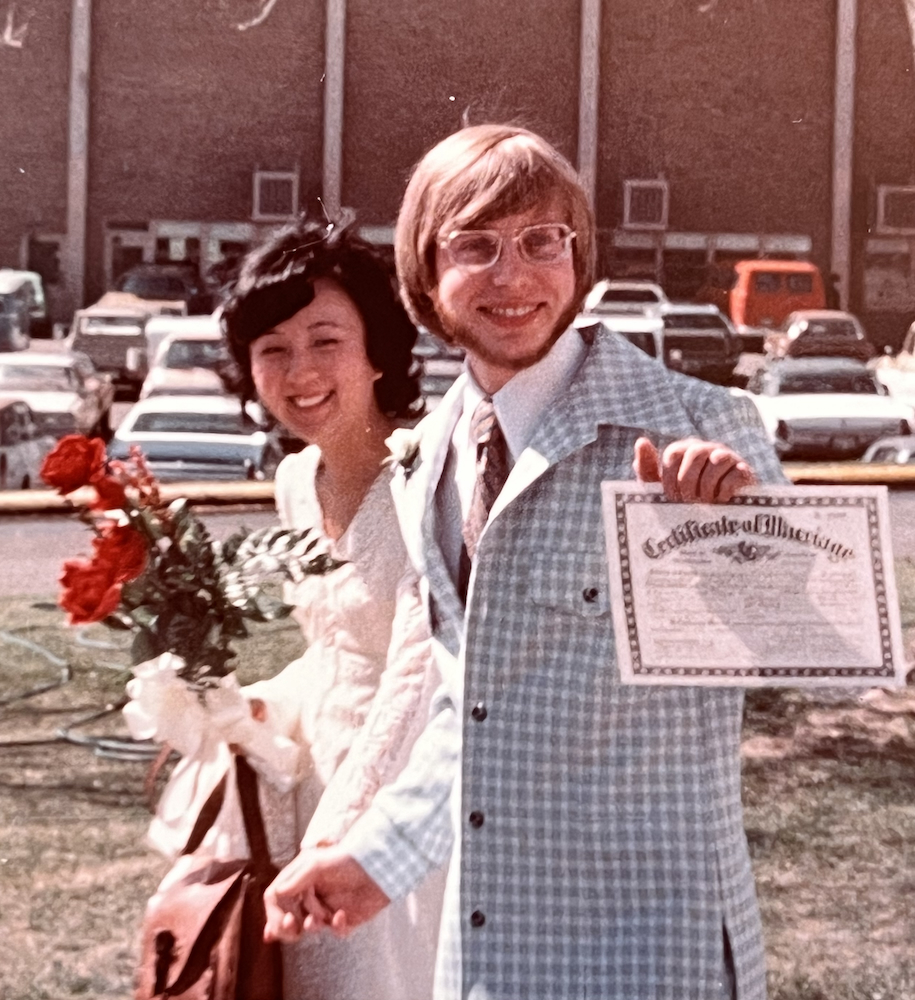 So, as fate usually works, it put Kay and Raymond at the same, unlikely place - in the desert at an analytical chemistry laboratory on the Hanford Site north of Richland, Washington. In Raymond’s memory he doesn’t recall when he first noticed Kay. Mostly he was trying to figure out what his job was supposed to be. Kay’s recollection is more specific: she noticed his interesting non-conformities and wondered how could she get his attention. A few months later they were formally introduced. And the rest, as they say, is just history. They were married about a year later on April 12, 1975.